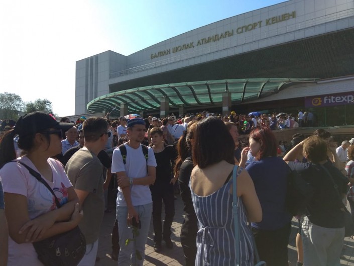 Возле дворца спорта не стихают аплодисменты. Алматы провожает Дениса Тена...