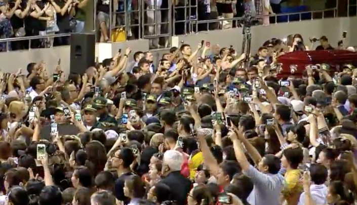 Люди аплодируют Геннадию Головкину - он в зале, прилетел из США, чтобы проститься с Денисом Теном.