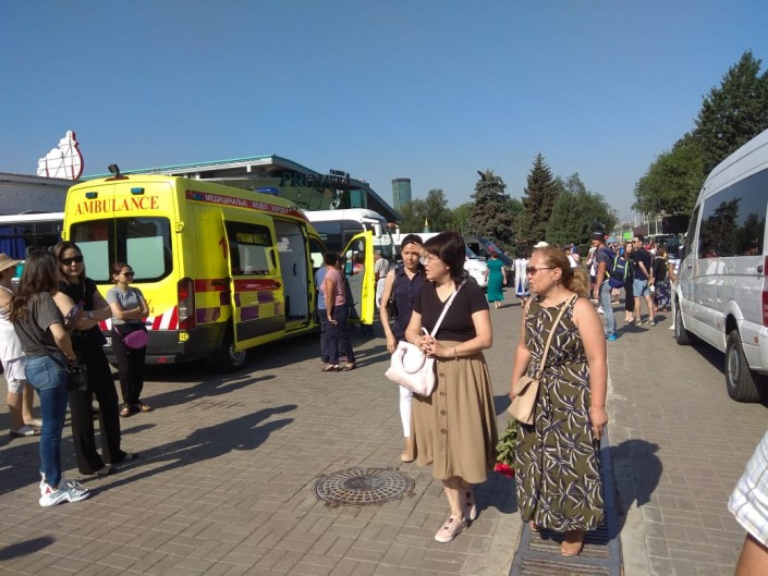 Из-за жары девушке в очереди стало плохо. Рядом дежурит скорая, медики оказывают всю необходимую помощь.