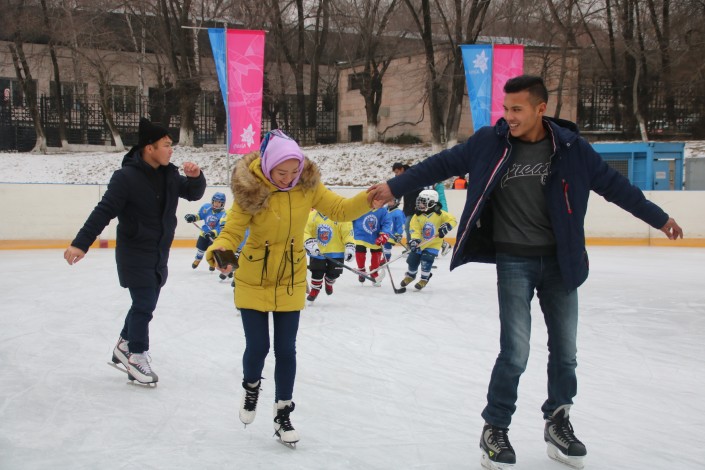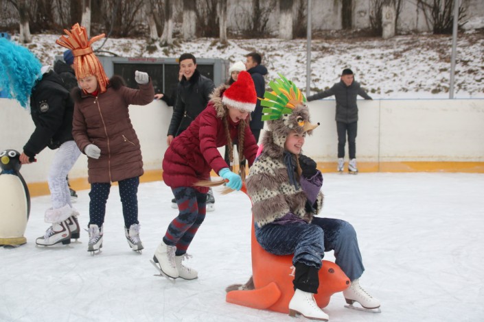 На открытии катка с небольшим мастер-классом выступили юные хоккеисты алматинского клуба и массово покатались студенты педагогического университета. Кроме того, яркими костюмами на льду выделялись гости из дома школьников.