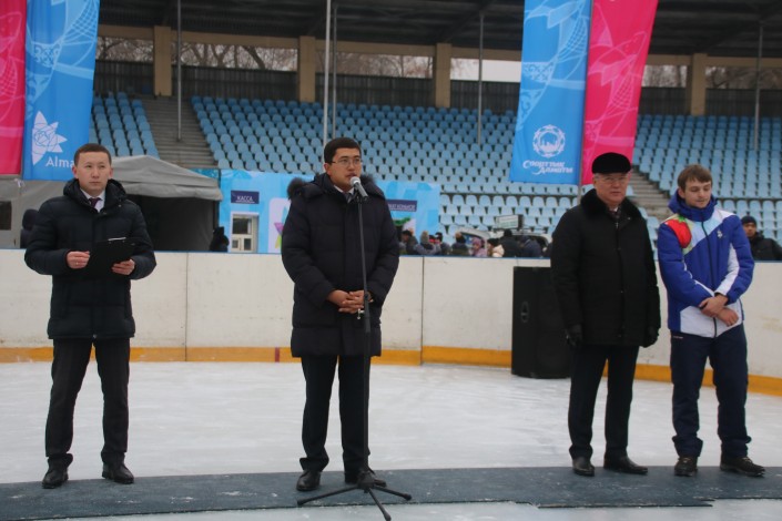 "Уважаемые гости и жители! Поздравляю всех с Днем Независимости! В рамках программы "Рухани жаңғыру" по инициативе акимата Алматы в городе открываются бесплатные катки. Это все делается для того, чтобы привлечь всех жителей города, в частности детей, к активному занятию спортом", - выступил с речью аким района.