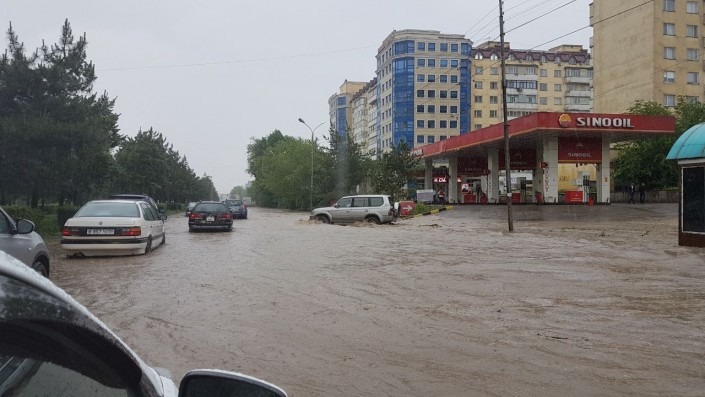 Алматинские улицы снова оказались под водой после дождя, сообщает корреспондент Тengrinews.kz. Обильные осадки, начавшиеся днем 26 мая после полудня, привели к тому, что некоторые участки дорог в городе затопило. Так, на отдельных участках по улице Толе би уровень воды достигает 10-15 сантиметров. Такая картина наблюдается от улицы Яссауи до Утеген батыра.