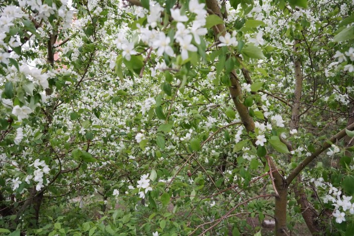 "Не только яблони опоздали с цветением, даже такие аборигенные породы деревьев, как тополь, клен, вяз, ива расцвели позже. На деревьях, где пошли молодые побеги, они немного подмерзли. Обычно деревья начинали выпускать зелень в начале мая, в этом году только пошло", - сказал Бахтияр Шаймухамбетов.