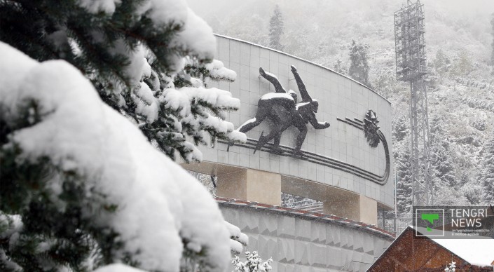 Судя по онлайн-трансляции на сайте "Шымбулак", на курорте бушует непогода. Весь склон и крыши зданий полностью покрыты первым снегом.
