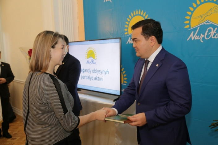 На собрании были вручены партийные билеты новым членам Nur Otan. И награждены победители областного этапа республиканского конкурса "Лучшая первичная организация".