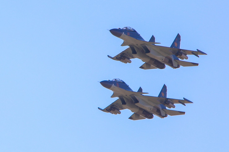 Экипажи многофункциональных истребителей Су-30СМ, штурмовиков Су-25, вертолетов армейской авиации Ми-17, Ми-35М вели огневое поражение наземных объектов условного противника неуправляемыми и управляемыми авиационными ракетами и бомбами.