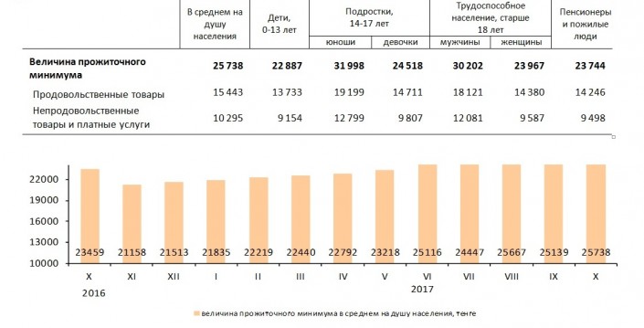Величина прожиточного минимума в октябре 2017 года составила 25 738 тенге, передает корреспондент Tengrinews.kz. Об этом сообщает пресс-служба МНЭ РК.