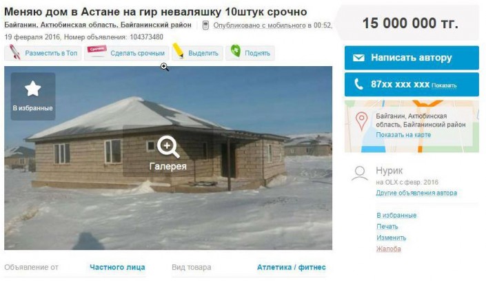 Житель поселка Баскудук рассказал "Ладе", что наткнулся на объявление о покупке гирь за баснословные деньги и решил разбогатеть. "Я две гири купил - одну за 40 тысяч тенге, другую за 55 тысяч тенге - у знакомых. Хотел за 10 тысяч долларов продать их потом через Интернет. Еще две гири мы с племянником в степи выкопали. Раньше их закапывали в землю и привязывали к ним верблюда, чтобы тот не ушел. Они там уже лет пять лежали, мы раскопали", - говорит коммерсант.