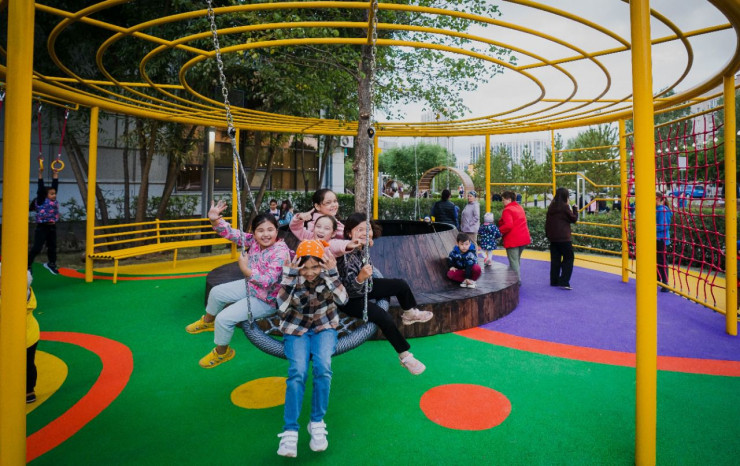 Новое общественное пространство с игровыми площадками, арочными качелями, сценой для выступлений появилось по улице Бараева, передает Tengrinews.kz со ссылкой на официальный сайт городского акимата.