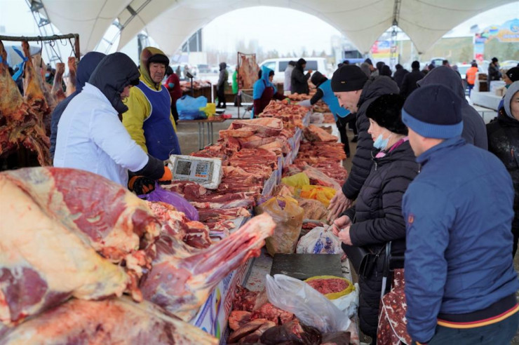 На ярмарке можно приобрести килограмм конины за 2200 тенге, говядины за 2000 тенге, баранины за 2000 тенге, птицы за 1000 тенге, вареной колбасы за 850-2000 тенге, картофель за 140 тенге.