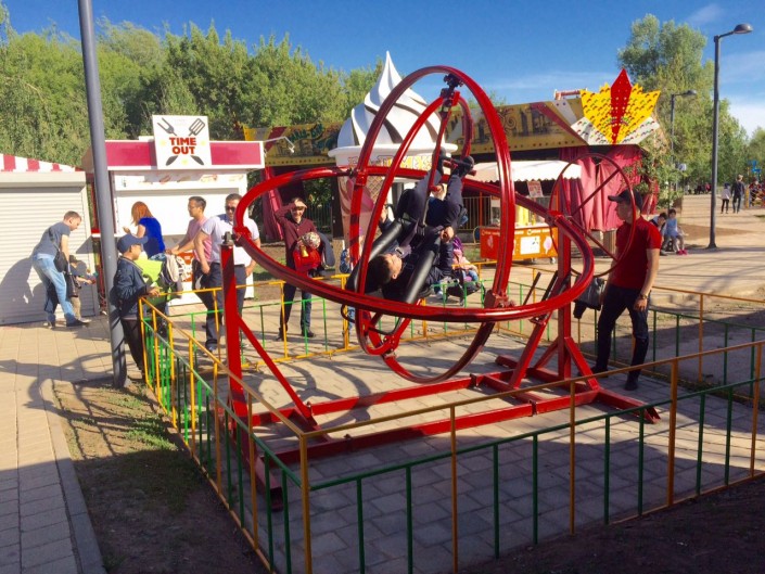 Экстремальные аттракционы не имеют возрастных ограничений, но имеют ограничение по росту - ребенок должен быть не ниже 130 сантиметров. Цена "американских горок" за детский билет составляет 700 тенге, за взрослый - 1000 тенге.