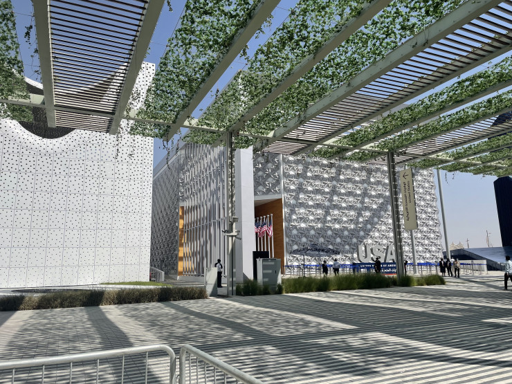 До казахстанского павильона от входа на территорию выставки нужно ехать на внутреннем автобусе. Зато отсюда до главного павильона Объединенных Арабских Эмиратов всего 5 минут ходьбы.