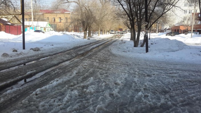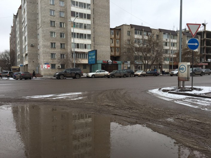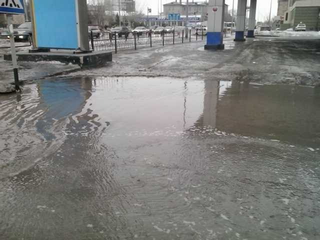 В Уральске днем уже по весеннему тепло, а ночью бывает легкий морозец. Поэтому на самых "ходовых" дорогах влага за ночь вымерзает и центральные улицы практически все уже без снега. Местами виднеется даже сухой асфальт. На второстепенных дорогах - каша из снега с водой или огромные лужи. Эти "моря разливанные", как показывает практика прошлых лет, исчезнут не раньше, чем к середине марта.