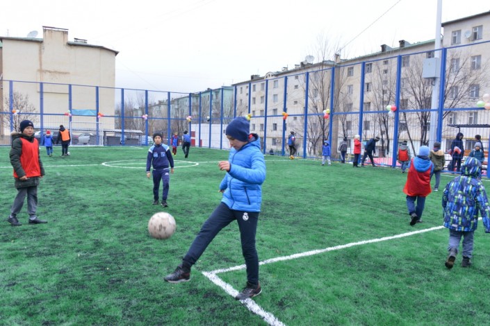 В Абайском районе тоже праздник. Здесь во дворах домов № 141, 141а, 141б была сдана в эксплуатацию современная детская спортивная площадка. В целом по району было благоустроено 10 дворов. В планах - благоустройство еще 40.