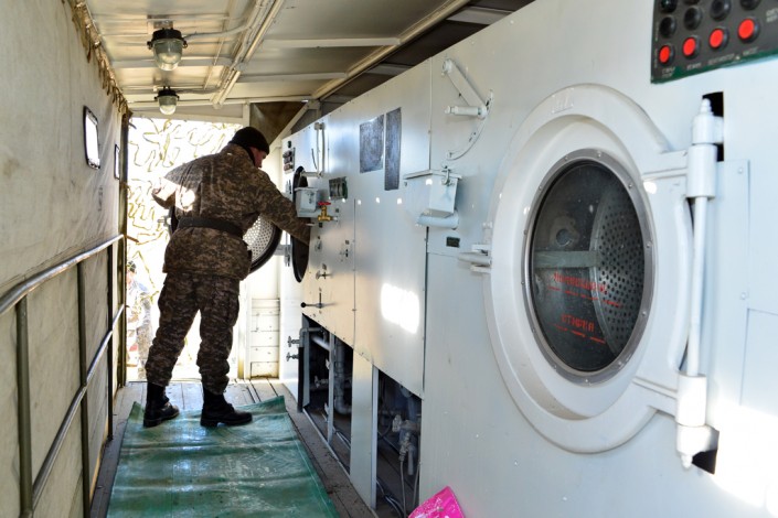 Также развернуты и функционируют сборный пункт ремонта поврежденных машин, вышедших из строя в ходе учений, полевой склад горючего, заправочный пункт, полевой артиллерийский склад, передвижной механизированный хлебозавод, малая механизированная прачечная, мобильная баня для помывки личного состава, мобильный операционно-реанимационный комплекс, полевой госпиталь.