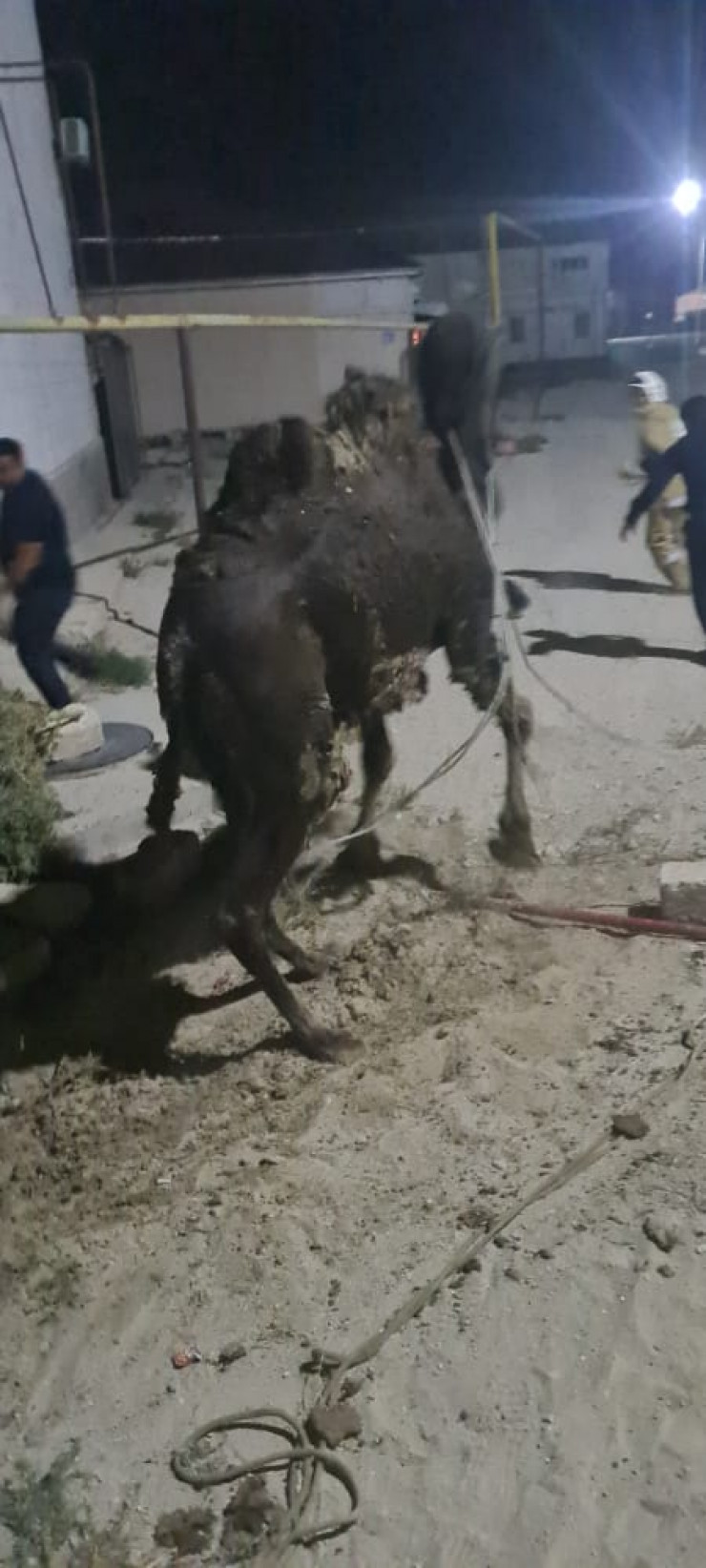 Выяснилось, что в 1-м микрорайоне за домом №42 в яму упал верблюд. Животное не смогло выбраться обратно.