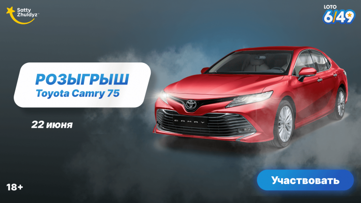 Уже завтра, 22 июня, в 20:55 в прямом эфире YouTube-канала Satty Zhuldyz пройдет розыгрыш одного из автомобилей Toyota Camry.