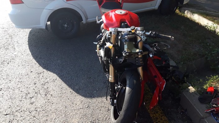 На место была вызвана противопожарная служба, так как у мотоцикла пробило бак и произошла утечка топлива.