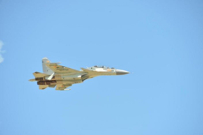 Одиночный пилотаж на новом самолете Су-30 продемонстрировали подполковники Владимир Ткач и Темиртас Ибраев. Они выполнили фигуры высшего пилотажа: "петлю Нестерова", "форсированный разворот на горке", "управляемый штопор", "колокол" и "форсированный вираж на малых скоростях". Летное мастерство продемонстрировала пилотажная группа "Жетысу" в составе трех самолетов Су-27 и одного истребителя Су-30. Ведущим группы выступил полковник Тимур Омаров, за ним на боевых самолетах следовали подполковники Нурлан Оразов и Арслан Галимов, а также полковник Ерлан Козгулов, замыкавший пилотажную группу.