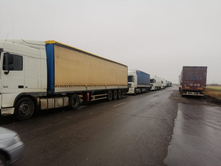 Водители большегрузов вторые сутки стоят в очереди на таможенном посту "Кайрак", передает корреспондент Tengrinews.kz.