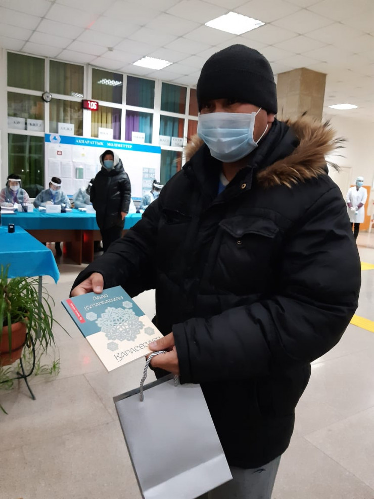 На всех 312 избирательных участках мегаполиса, которые начали работу в 07:00, первому избирателю вручали книгу великого поэта Абая Кунанбаева. Бауыржан Дарбеков был одним из них.
