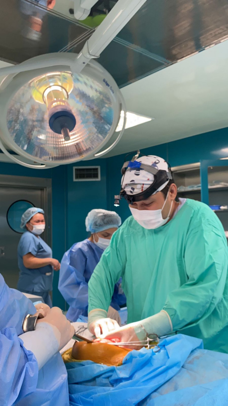 "Сложность операции заключалась в самом расположении образования. Оно сдвинуло все органы брюшной полости в одну сторону, разместившись на всей левой половине. Границы образования находились очень близко к аорте, образование практически лежало на аорте, прилегая к левой почке и мочеточнику, а внизу образование ушло через паховую область, проходя совсем рядом с бедренной артерией в верхнюю треть бедра. Сложность доступа заключалась в том, что нужно было сделать дополнительный разрез в паховой области. Чтобы извлечь образование, пришлось в три руки очень осторожно отделять образование от органов, к которым оно буквально приросло. Образование удалось извлечь, не нарушив целостности, что очень важно", - объяснил заведующий операционным блоком ГБСНП Нуркен Желдибаев.