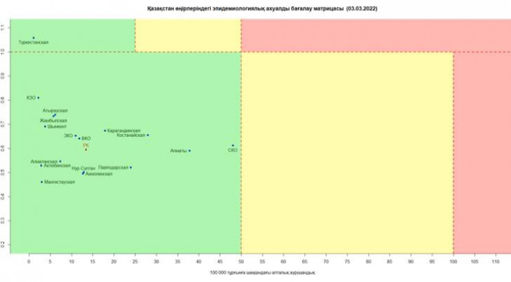 Напомним, что 1 марта в "зеленую" зону перешел Алматы и в "желтой" зоне оставалась только Северо-Казахстанская область.