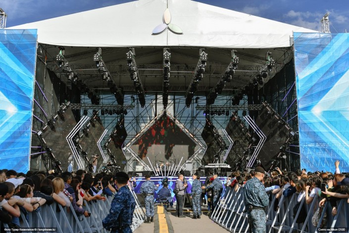 Всего зрители увидели более 30 выступлений казахстанских и российских звезд. После захода солнца сцена осветилась прожекторами и шоу продолжалось до 23.00.