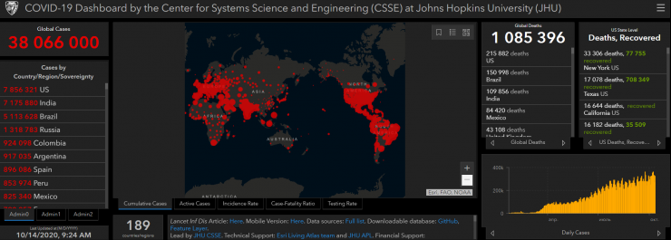 Общее число зараженных коронавирусом в мире превысило 38 миллионов. Хорошая новость в том, что более 26 миллионов успешно победили болезнь. Но число жертв, по данным Университета Джонса Хопкинса, составляет уже 1 миллион 85 тысяч человек.