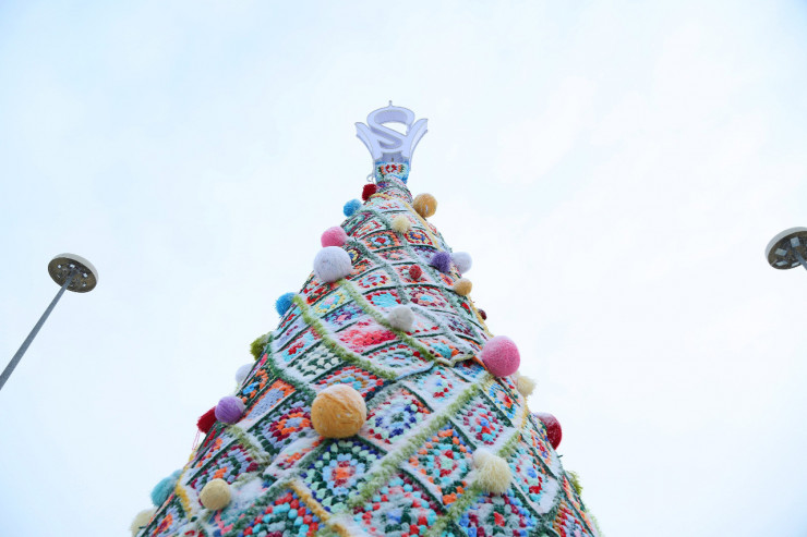 Вязаную елку высотой шесть метров установили в Нур-Султане 29 декабря. Народный флешмоб "Экоелка в стиле құрақ көрпе" был запущен в Нур-Султане две недели назад. За это время связано свыше 2 000 квадратиков размером 20 на 20 сантиметров. Народный проект объединил города Казахстана и жителей столицы. Также вязали мастерицы из России и Узбекистана.