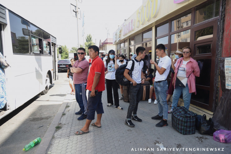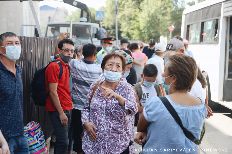 Ограничения распространились и на следующий день, поэтому на железнодорожном вокзале Тараза можно было наблюдать большое скопление пассажиров.