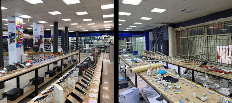 Один из магазинов "Белый ветер" до и после погромов. Фото с официального сайта магазина shop.kz