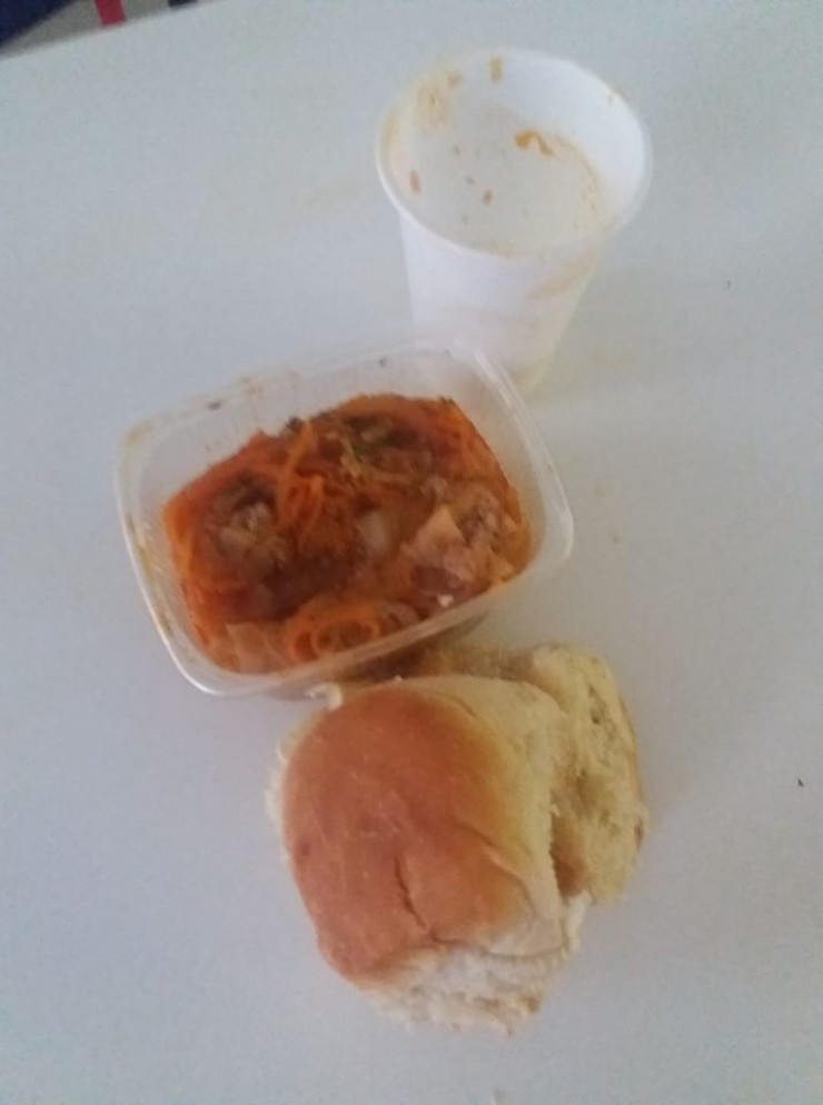 А если не я, а кто-то другой все таки заразен, то мы уже давно заразили друг друга. Мы с разных рейсов, кормят отвратительно прилагаю фото ужина. Мисочка пластмассовая с не пойми чем. Ни витаминов, ни усиленного питания нет.