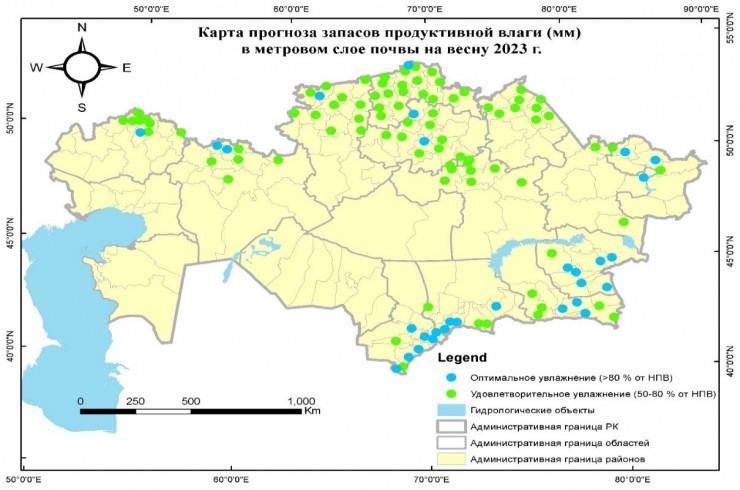 Расчеты показывают, что влагообеспеченность полей по территории Казахстана перед весенне-полевыми работами ожидается: