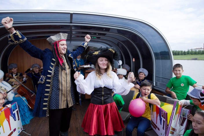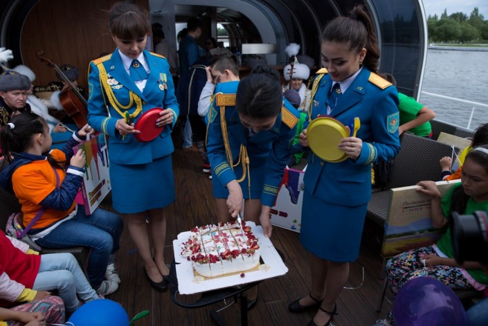 В честь Дня столицы женщины-военнослужащие Вооруженных Сил Казахстана провели в Астане благотворительную акцию. Победительницы конкурса "Батыр арулар" устроили детям из многодетных и малообеспеченных семей необычный праздник на пароходе, сообщает корреспондент Tengrinews.kz со ссылкой на пресс-службу Министерства обороны РК.