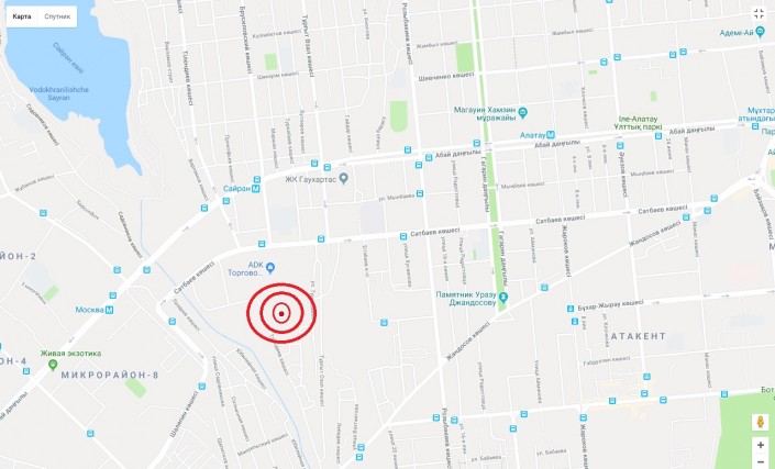 Согласно полученным данным, эпицентр землетрясения находился рядом с ТРЦ ADK на улице Сатпаева.