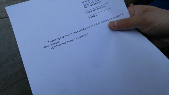 Кроме заявления горожанам необходимо сдать копию удостоверения личности. Это весь перечень документов, который необходимо предоставить в акимат.