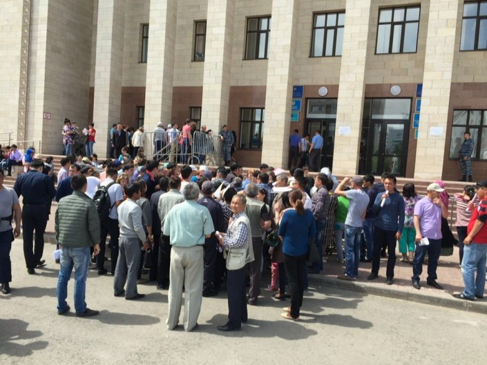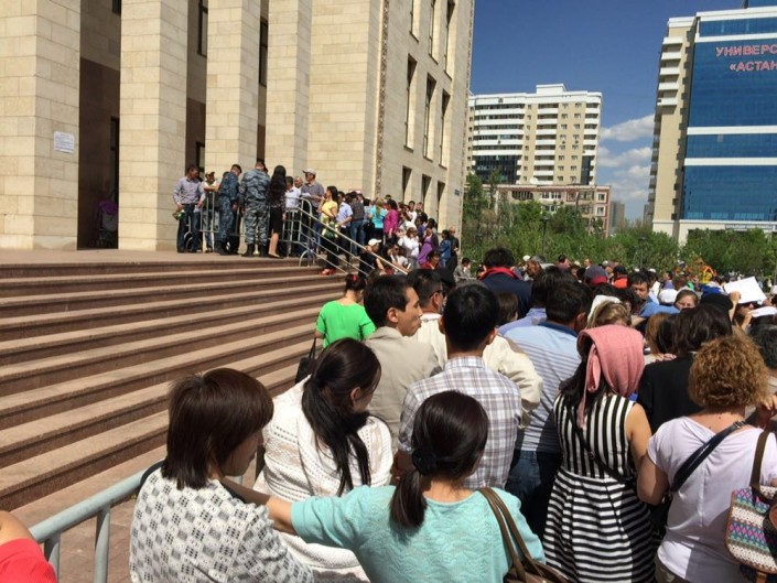 Из-за большого количества желающих подать заявление возле акимата выставили ограждение.