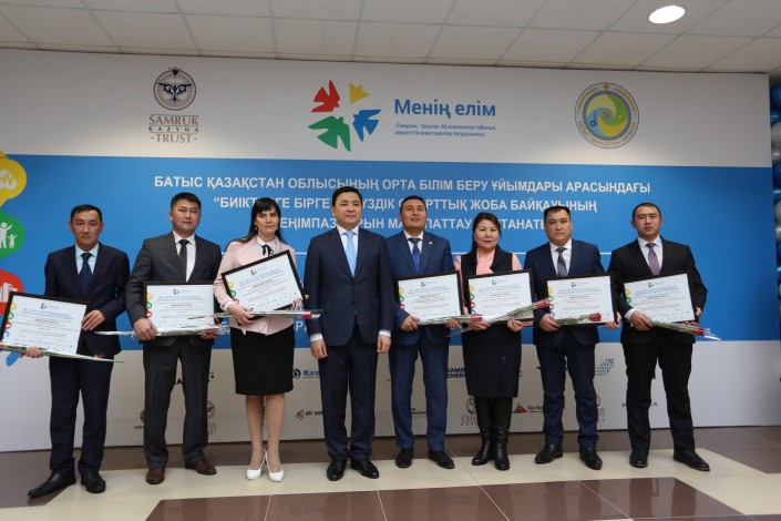 Отметим, что в рамках программы "Менің елім" был проведен конкурс "Биіктерге бірге" среди образовательных школ региона. По итогам отбора были выбраны школы-победители. Из рук акима области Алтая Кульгинова они приняли сертификаты на получение нового спортивного инвентаря.