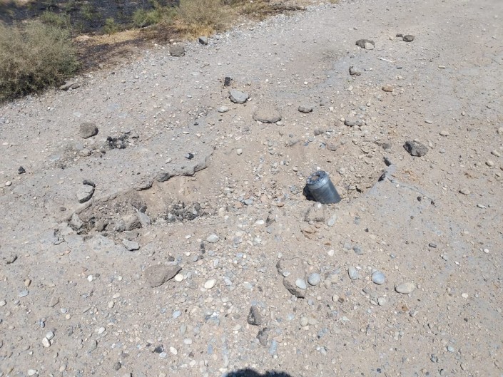 "122 миллиметрлік 9М21 жарқыншақты-фугастық зымыраны. Бас бөлігі жерге кіріп кеткен. Кез келген жарылмаған снаряд өте қауіпті. Мұндай снарядқа жоламаңыз!", - дейді сапер.