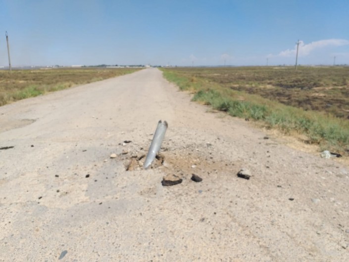 "Бұл 9М27 зымыранының 220 миллиметрлік реактив бөлшегі, фугастық немесе құндақтық. Суреттің масштабы түсініксіз. Бас жағы құндақтық болса, онда өте қауіпті саналады. Себебі дайын зақымдаушы элементтері үлкен территорияға жарылады және жарылғышы соғыс жағдайы тәртібіне көшеді. Яғни бұл әуеде жарылатын снаряд. Оған мүлдем қол тигізбеу керек. Мұндай снаряд сол жатқан жерінде жойылуы тиіс", - дейді маман.