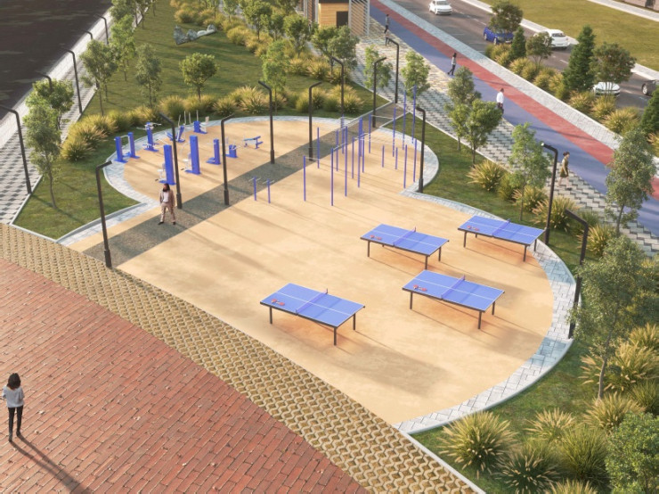 Здесь также появятся теннисные столы, теневые навесы, скамейки-качели, зона для барбекю.