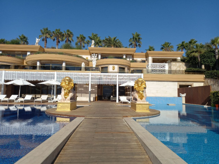 Здесь, пожалуй, мы увидели самые настоящие царские условия. Например, на территории отеля находится дворец, стоимость которого 36 тысяч евро за ночь. Как нам сказали, это самый дорогой дворец в Европе. Тут есть свой личный пирс, хаммам, приватный пляж и бассейны.