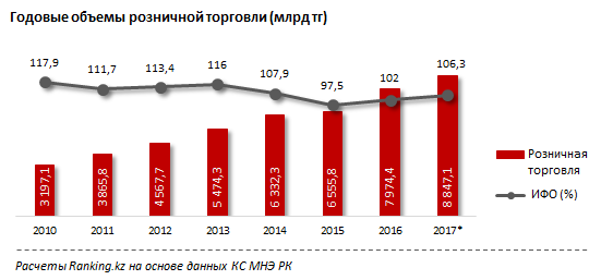 "После неблагоприятного кризисного 2015 года, когда розничные торговые компании ушли в минус на 2,5 процента (с учетом инфляции), ситуация определенно выправляется. По итогам 2016 года рост реальных объемов розничных продаж составил 2 процента, а в 2017 году подскочил сразу до 6,3 процента", - говорят аналитики.