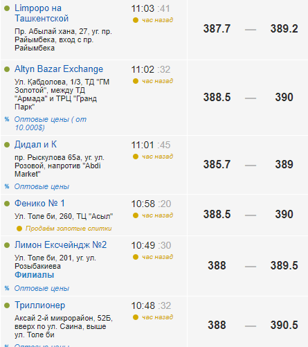 Первая сделка торгов 1 октября прошла по цене 388,3 тенге. Это и стало минимальной стоимостью. Максимальная цена достигла 388,48 тенге. Объем торгов достиг 525,75 миллиона долларов.