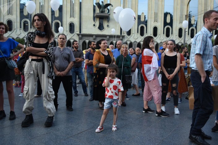 Участники акции держат в руках белые шарики. Так митингующие хотят показать, что их протест носит исключительно мирный характер.