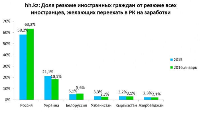 В январе 2016 года увеличилось количество специалистов, желающих поехать в Казахстан на заработки. Речь идет о сотрудниках из Грузии, Италии, Германии, Латвии и Туркменистана, таким мнением с корреспондентом Tengrinews.kz поделилась PR-менеджер HeadHunter Казахстан Лидия Стоялова.