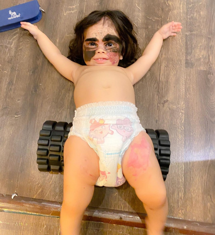 Женщина рассказала, как проходит восстановление тканей. На кадрах видно, что "пятно Бэтмена" на лице ребенка уменьшилось, а кожа на лбу заживает.