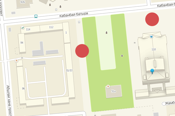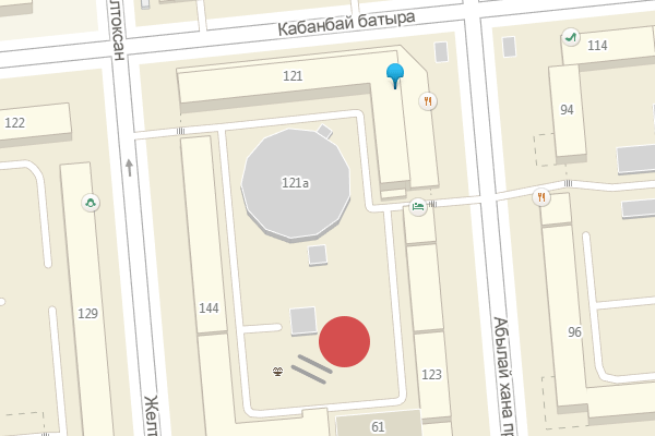 Адрес: улица Кабанбай батыра, 110, угол улицы Панфилова