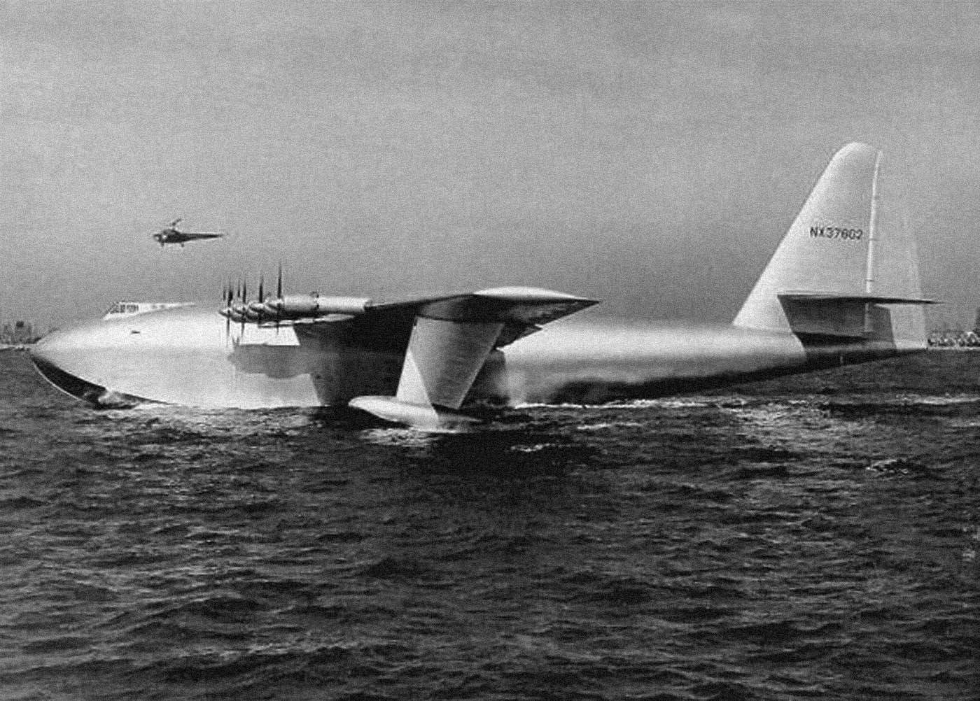 "Геркулес" до сих пор сохраняет громкие статусы самого крупного гидросамолета в истории и обладателя самого большого размаха крыла (98 метров), хотя создан был еще под руководством американского магната Говарда Хьюза во времена Второй мировой войны. Портит картину несколько обстоятельств: предназначавшийся для переброски 750 солдат в полном снаряжении через Атлантику, "Геркулес" так ни разу и не пересек океан и остался в единственном экземпляре, причем деревянном. Столь экзотический для авиации материал был выбран из-за ограничений, накладываемых военным положением, в котором оказалась экономика Штатов - относительно металлов, особенно алюминия, наблюдался дефицит. В 1947 году деревянный "Геркулес" все же взлетел, однако от дальнейшего развития проекта отказались.